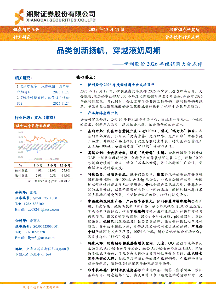 食品饮料行业:湘财证券-食品饮料行业点评:伊利股份2026年经销商大会点评,品类创新扬帆,穿越液奶周期-251219