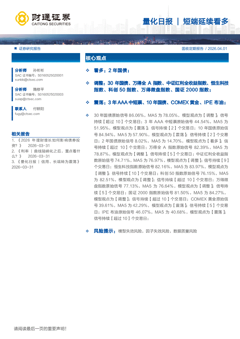 财通证券-量化日报|长端输出概率逐步下行-260327