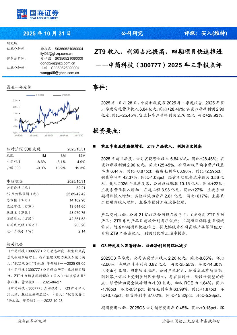 中简科技:国海证券-中简科技-300777-2025年三季报点评:ZT9收入、利润占比提高,四期项目快速推进-251031