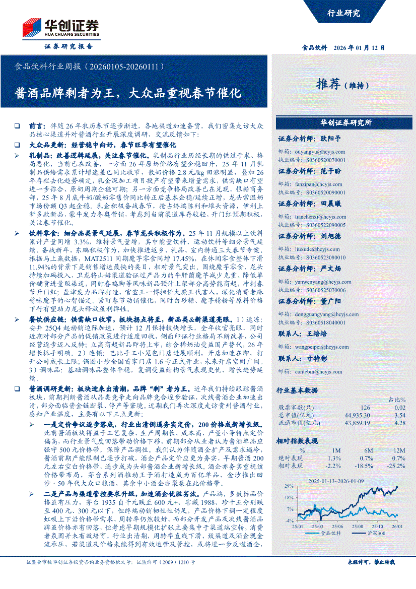 食品饮料行业:华创证券-食品饮料行业周报:酱酒品牌剩者为王,大众品重视春节催化-260112