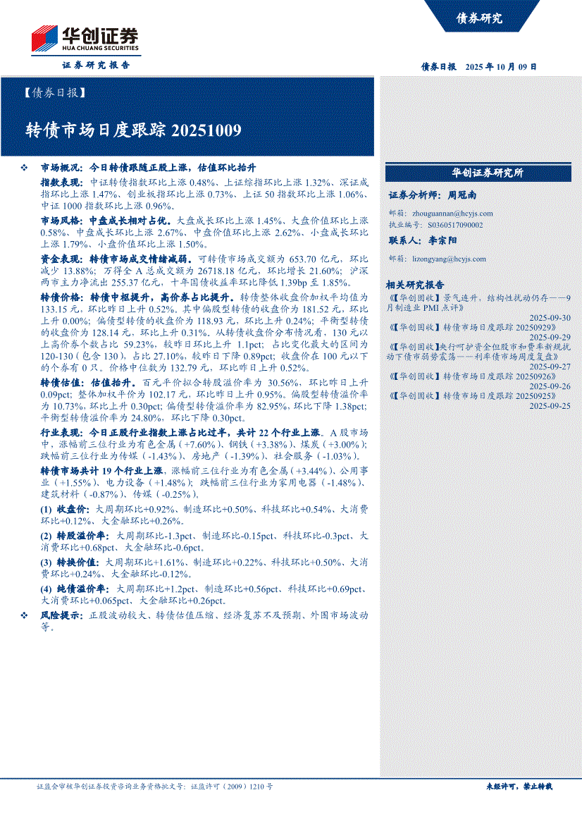 华创证券-【债券日报】转债市场日度跟踪-251009