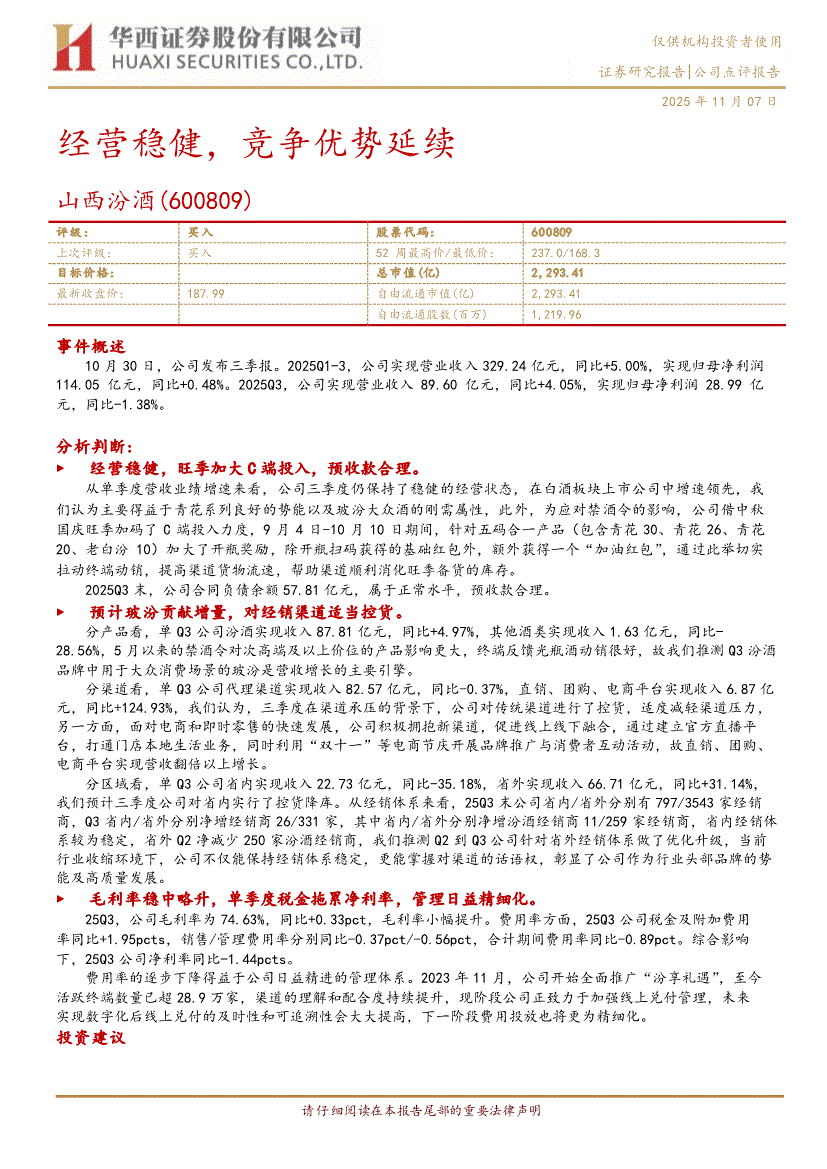 山西汾酒:华西证券-山西汾酒-600809-经营稳健,竞争优势延续-251107