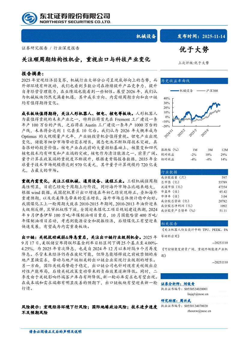 机械设备行业:东北证券-机械设备行业:关注顺周期结构性机会,重视出口与科技产业变化-251114