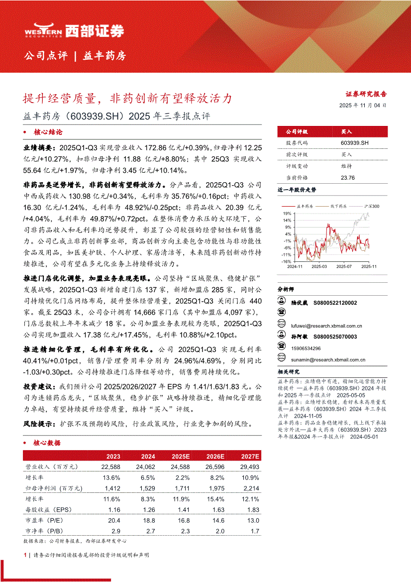 益丰药房:西部证券-益丰药房-603939-2025年三季报点评:提升经营质量,非药创新有望释放活力-251104