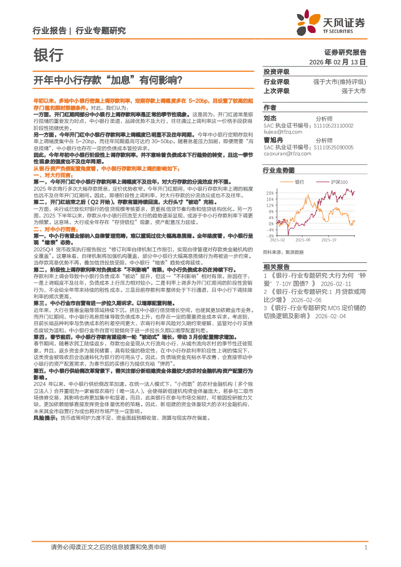 银行业:天风证券-银行业:开年中小行存款“加息”有何影响?-260213