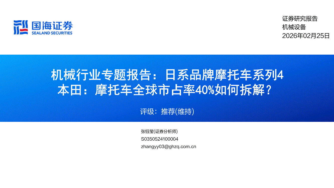 机械行业:国海证券-机械行业专题报告:日系品牌摩托车系列4,本田,摩托车全球市占率40%如何拆解?-260225