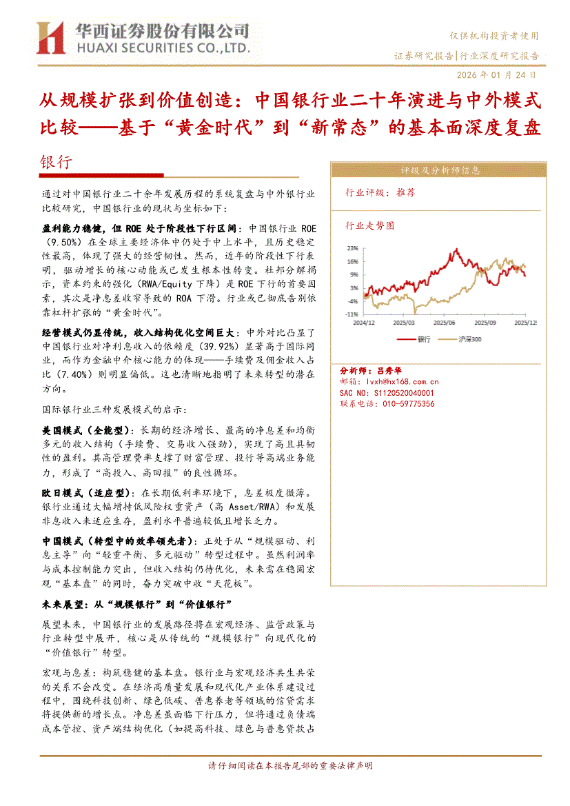 银行业:华西证券-银行业从规模扩张到价值创造:中国银行业二十年演进与中外模式比较——基于“黄金时代”到“新常态”的基本面深度复盘-260124