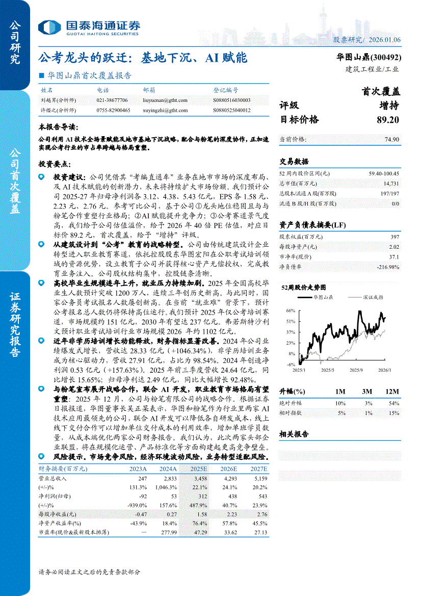 华图山鼎:国泰海通证券-华图山鼎-300492-首次覆盖报告:公考龙头的跃迁,基地下沉、AI赋能-260106