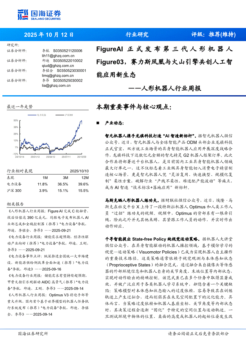 人形机器人行业:国海证券-人形机器人行业周报:FigureAI正式发布第三代人形机器人Figure03,赛力斯凤凰与火山引擎共创人工智能应用新生态-251012