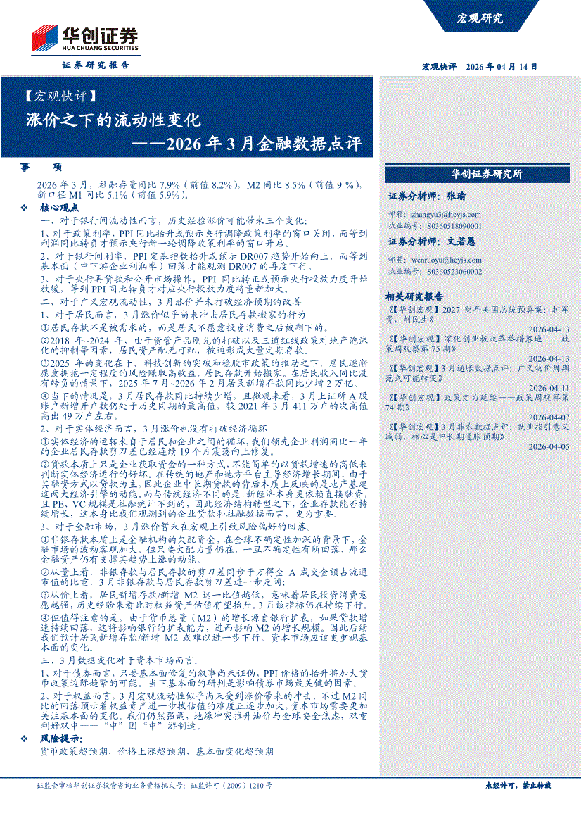 华创证券-2026年3月金融数据点评:涨价之下的流动性变化-260414