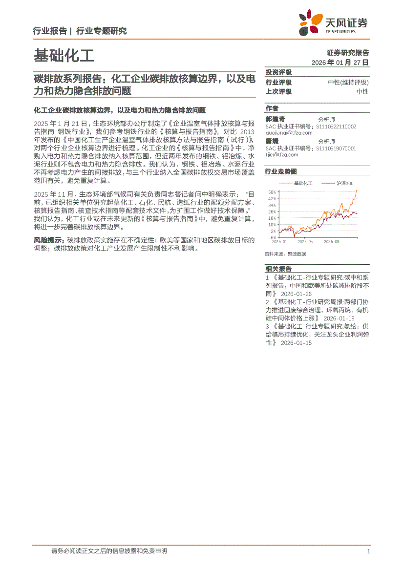 基础化工行业:天风证券-基础化工行业专题研究:碳排放系列报告,化工企业碳排放核算边界,以及电力和热力隐含排放问题-260127