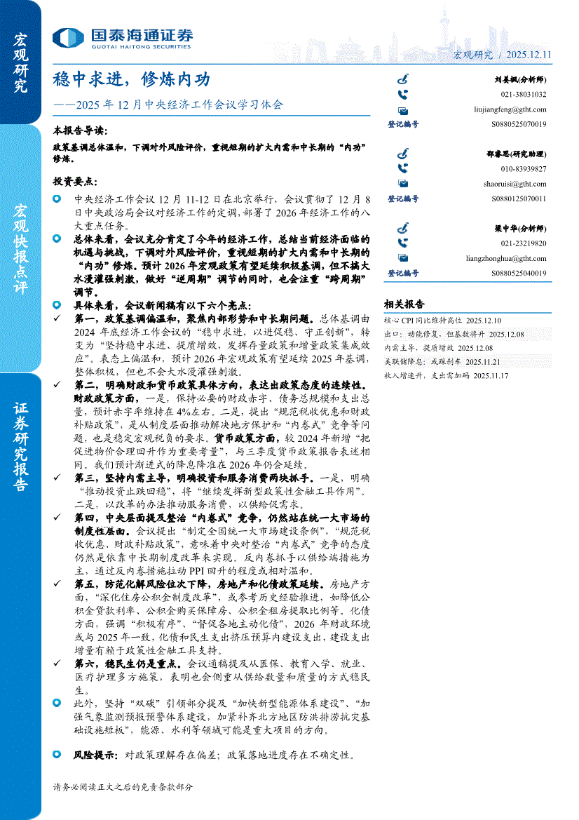 国泰海通证券-2025年12月中央经济工作会议学习体会:稳中求进,修炼内功-251211