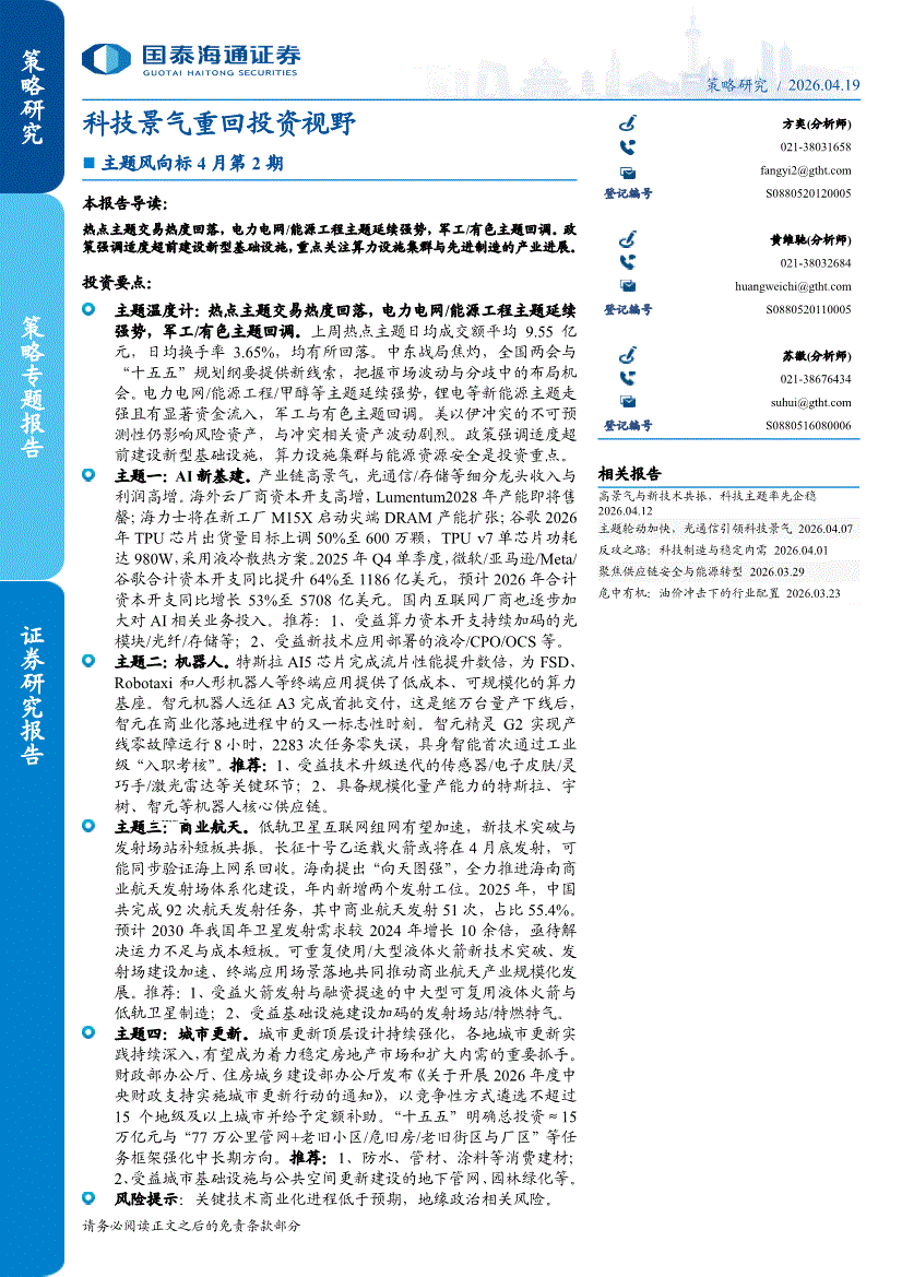 国泰海通证券-主题风向标4月第2期:科技景气重回投资视野-260419