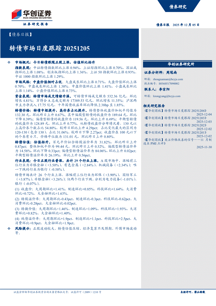 华创证券-【债券日报】转债市场日度跟踪-251205