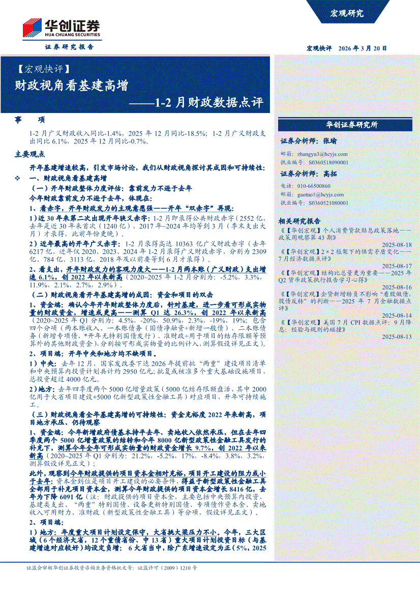 华创证券-【宏观快评】1~2月财政数据点评:财政视角看基建高增-260320