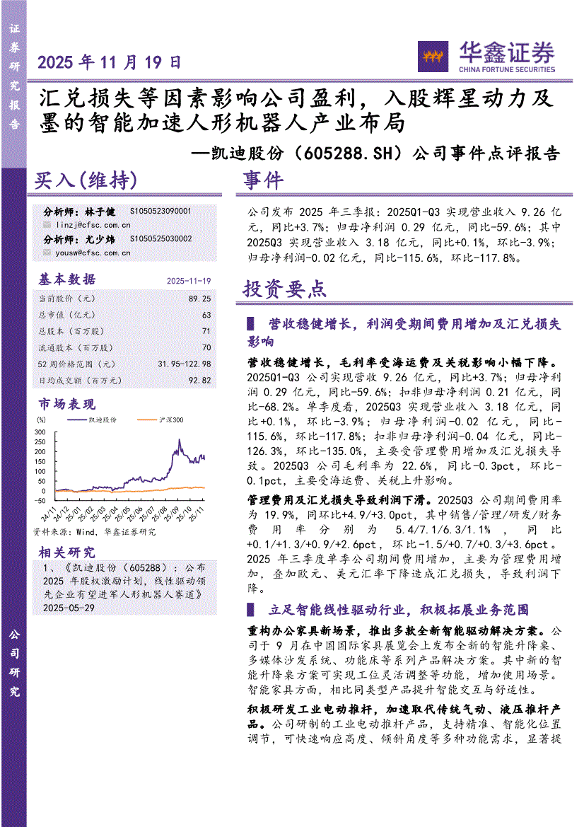 凯迪股份:华鑫证券-凯迪股份-605288-公司事件点评报告:汇兑损失等因素影响公司盈利,入股辉星动力及墨的智能加速人形机器人产业布局-251119