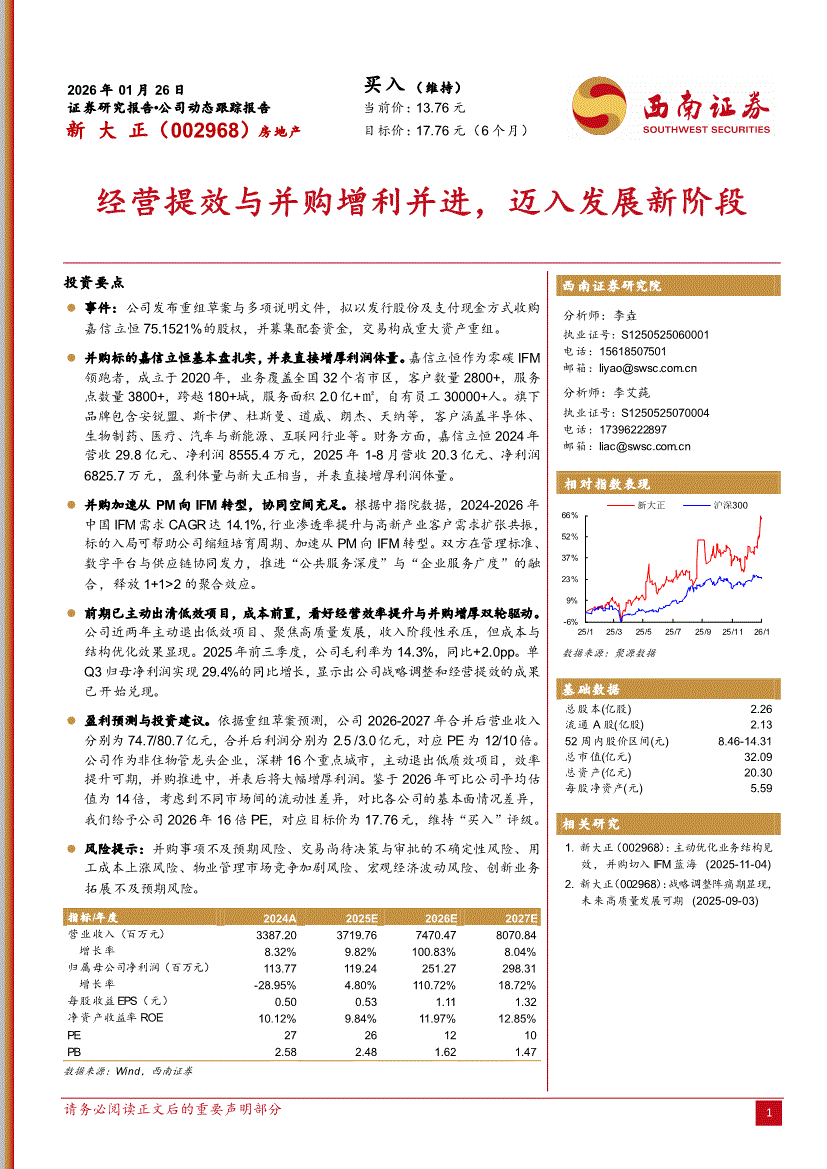 新大正:西南证券-新大正-002968-经营提效与并购增利并进,迈入发展新阶段-260126