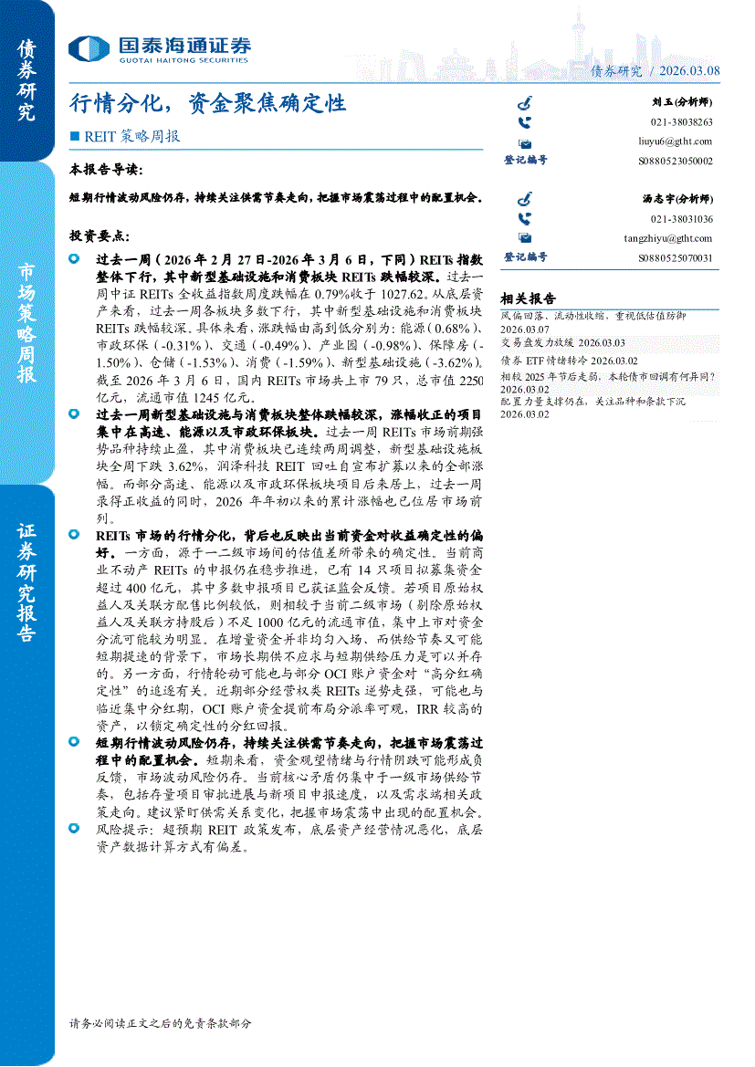 国泰海通证券-REIT策略周报:行情分化,资金聚焦确定性-260308