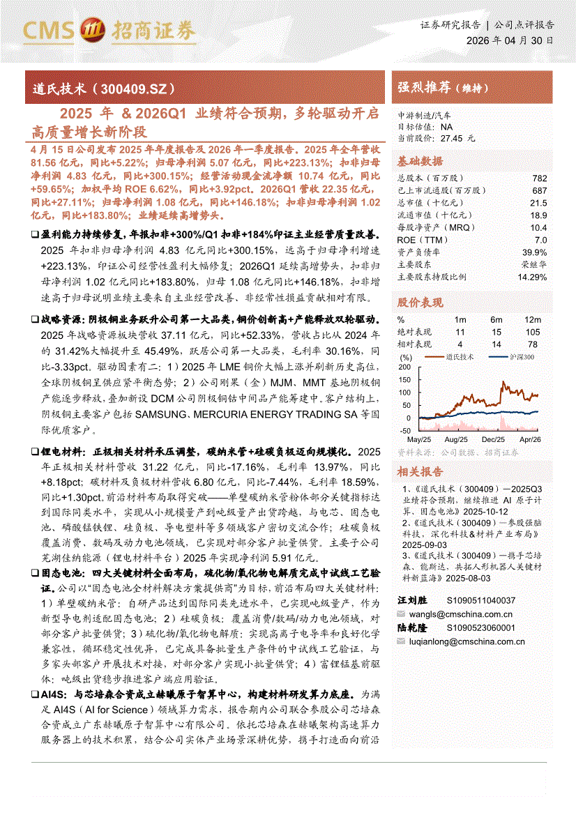 道氏技术:招商证券-道氏技术-300409-2025年&2026Q1业绩符合预期,多轮驱动开启高质量增长新阶段-260430