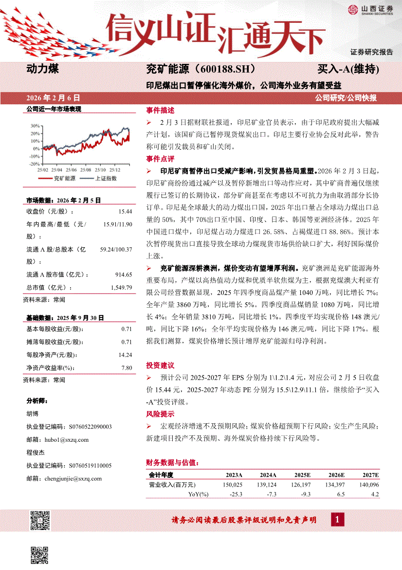 兖矿能源:山西证券-兖矿能源-600188-印尼煤出口暂停催化海外煤价,公司海外业务有望受益-260206