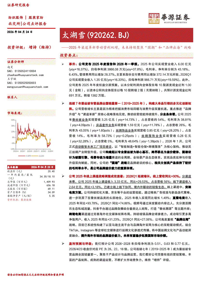 太湖雪:华源证券-太湖雪-920262-2025年渠道革新带动营利双增,未来持续聚焦“国潮”和“品牌出海”战略-260424