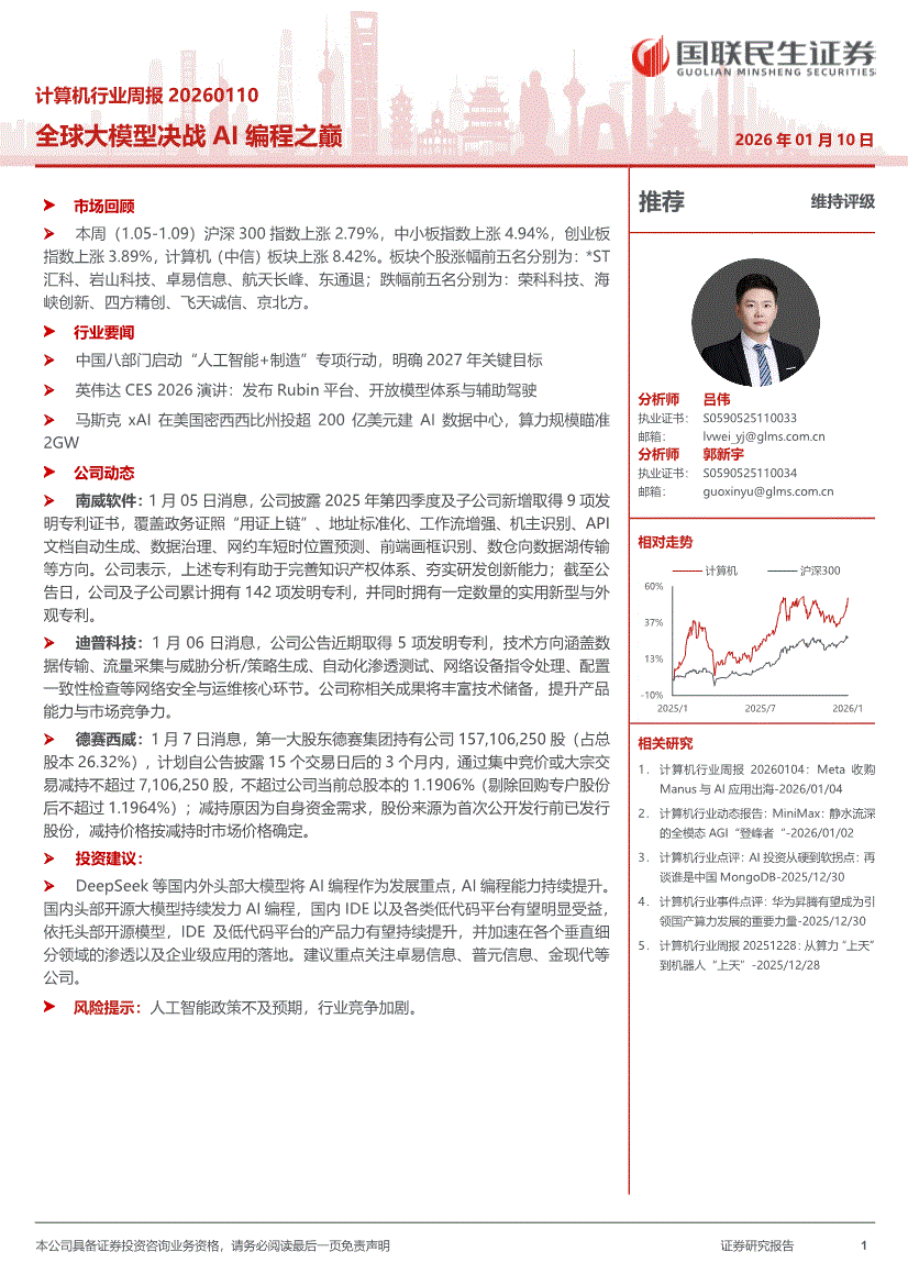 计算机行业:国联民生证券-计算机行业周报:全球大模型决战AI编程之巅-260110
