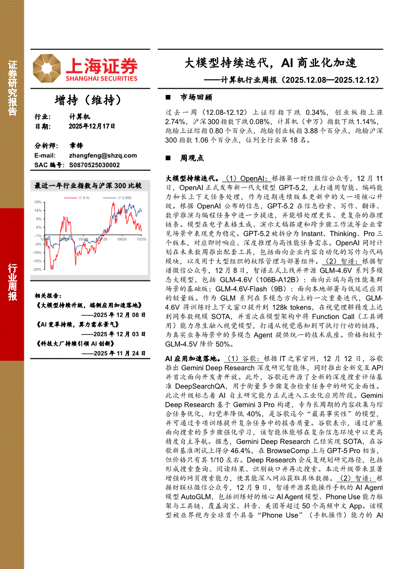 计算机行业:上海证券-计算机行业周报:大模型持续迭代,AI商业化加速-251217
