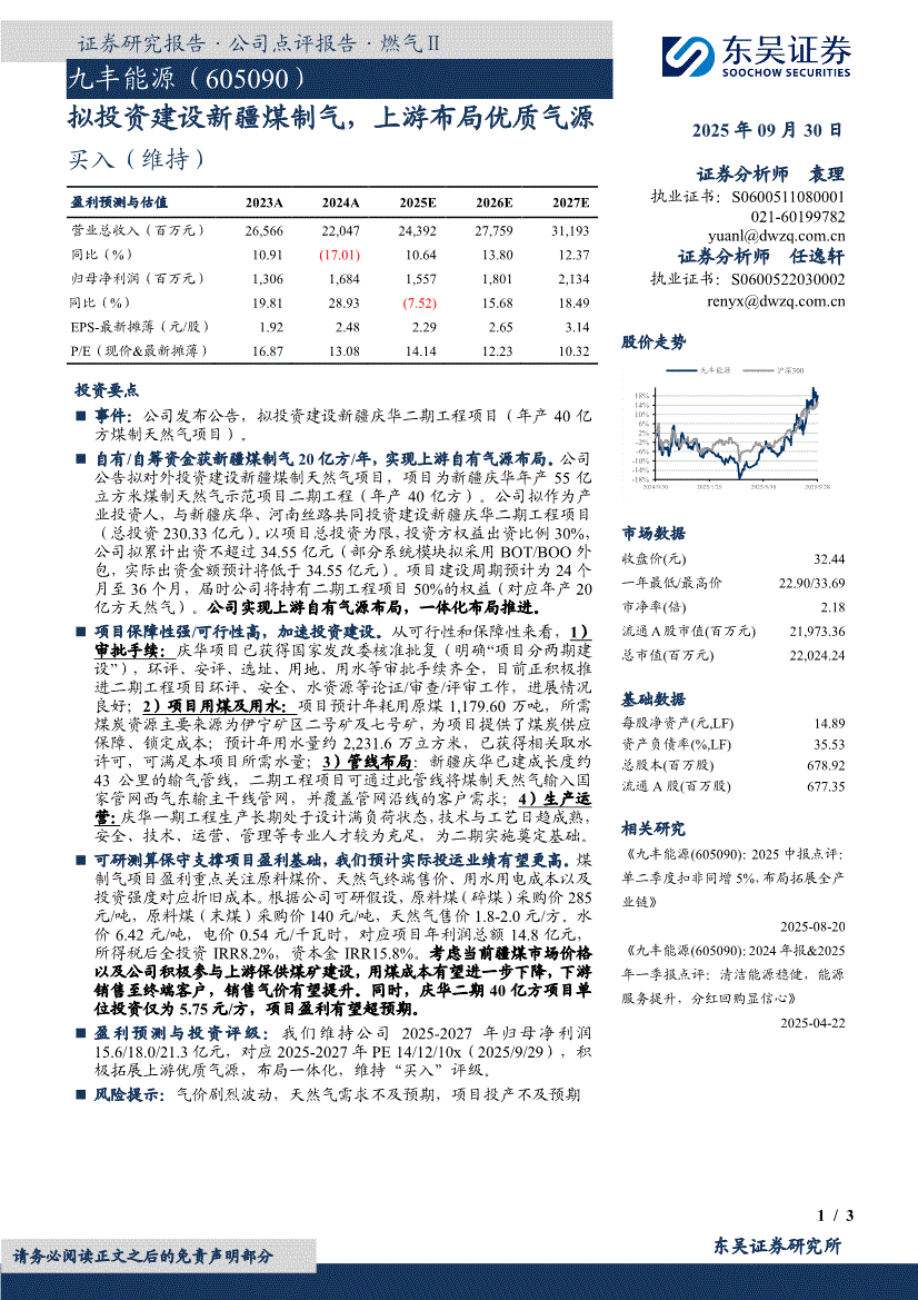 九丰能源:东吴证券-九丰能源-605090-拟投资建设新疆煤制气,上游布局优质气源-250930