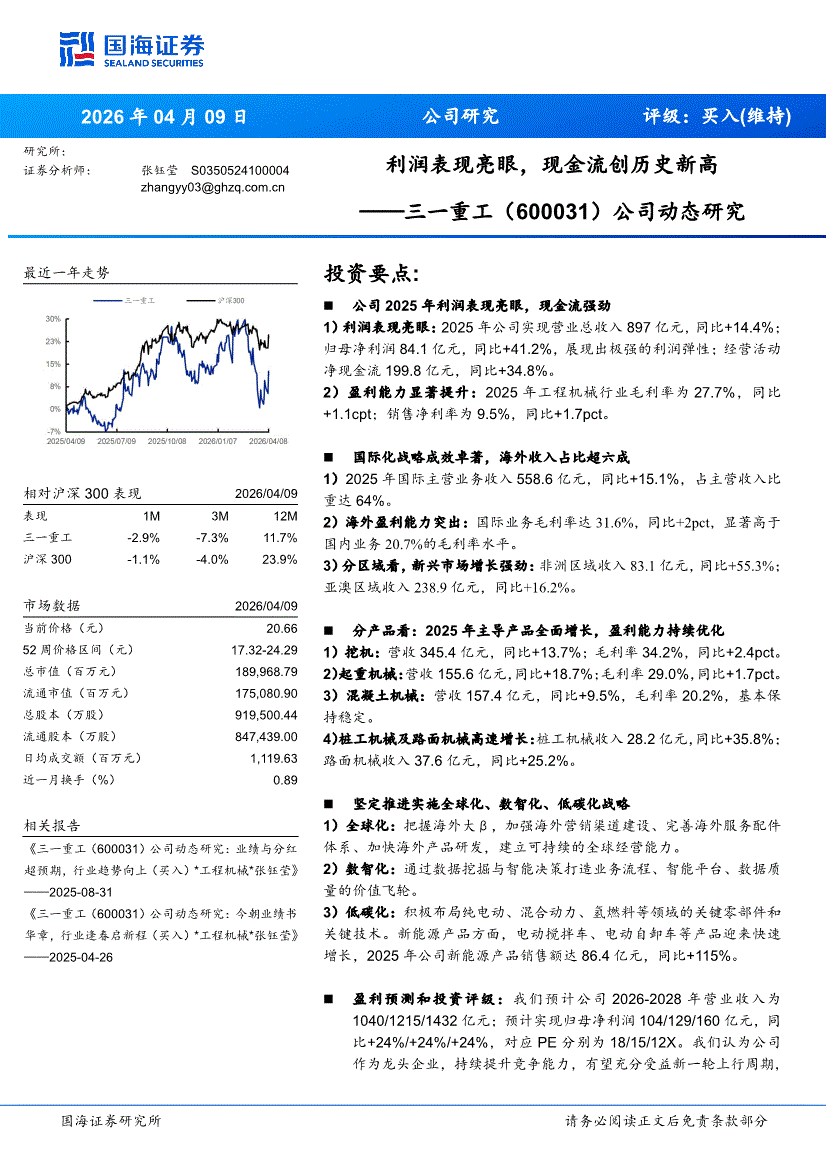 三一重工:国海证券-三一重工-600031-公司动态研究:利润表现亮眼,现金流创历史新高-260409