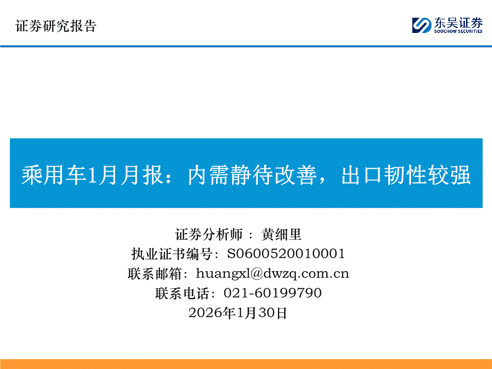 乘用车行业:东吴证券-乘用车行业1月月报:内需静待改善,出口韧性较强-260130