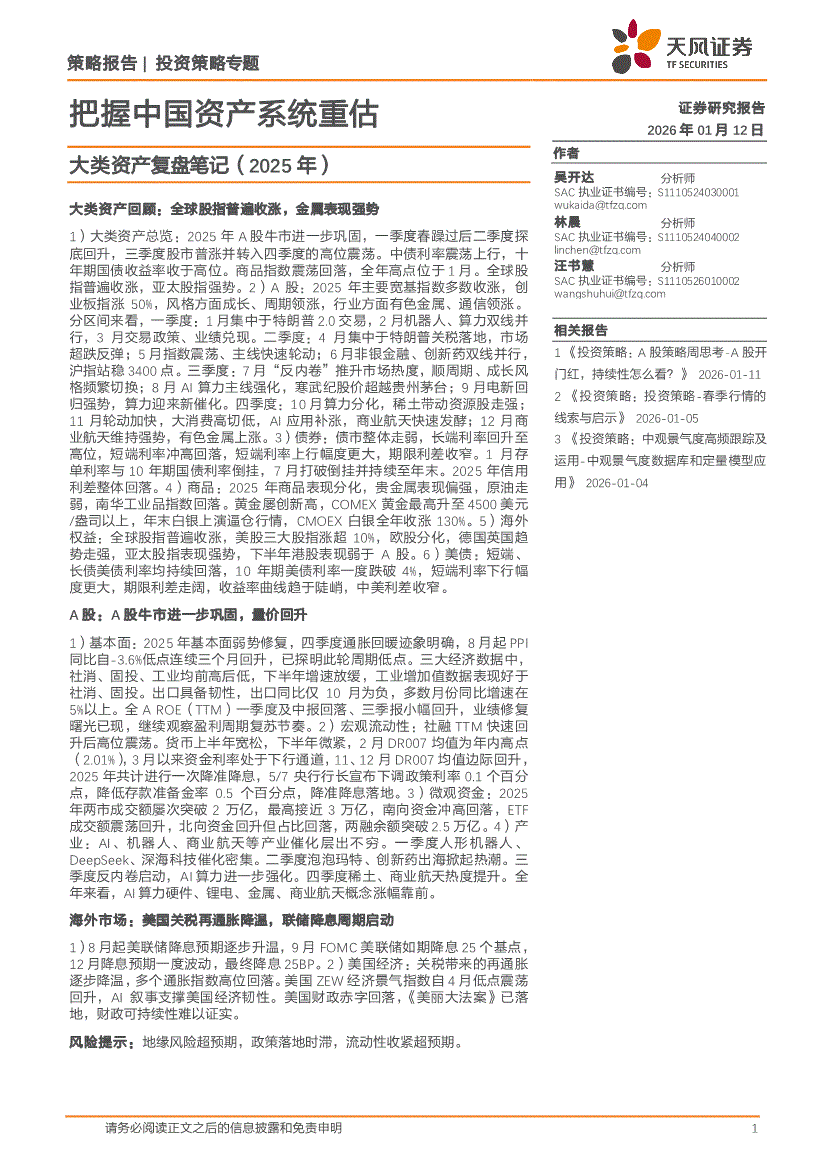天风证券-大类资产复盘笔记(2025年):把握中国资产系统重估-260112