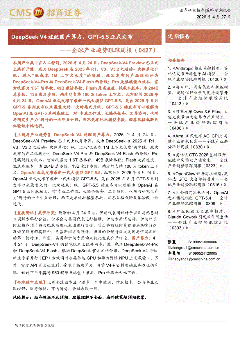 招商证券-全球产业趋势跟踪周报(0427):DeepSeek V4适配国产算力,GPT~5.5正式发布-260427