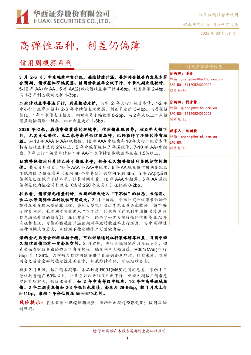 华西证券-信用周观察系列:高弹性品种,利差仍偏薄-260309