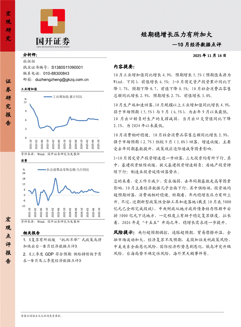 国开证券-10月经济数据点评:短期稳增长压力有所加大-251114