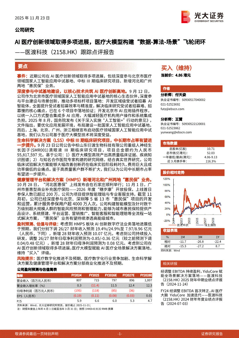 医渡科技:光大证券-医渡科技-2158.HK-跟踪点评报告:AI医疗创新领域取得多项进展,医疗大模型构建“数据~算法~场景”飞轮闭环-251123