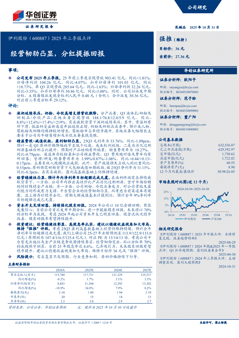 伊利股份:华创证券-伊利股份-600887-2025年三季报点评:经营韧劲凸显,分红提振回报-251031