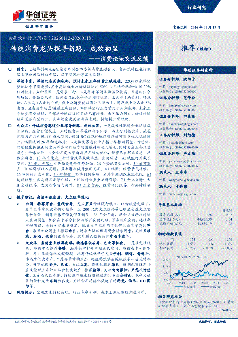 食品饮料行业:华创证券-食品饮料行业周报:消费论坛交流反馈,传统消费龙头探寻新路,成效初显-260119