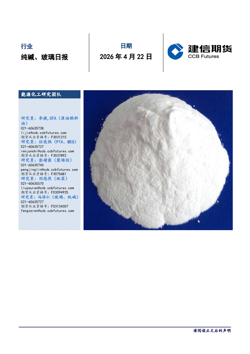 建信期货-纯碱、玻璃日报-260421
