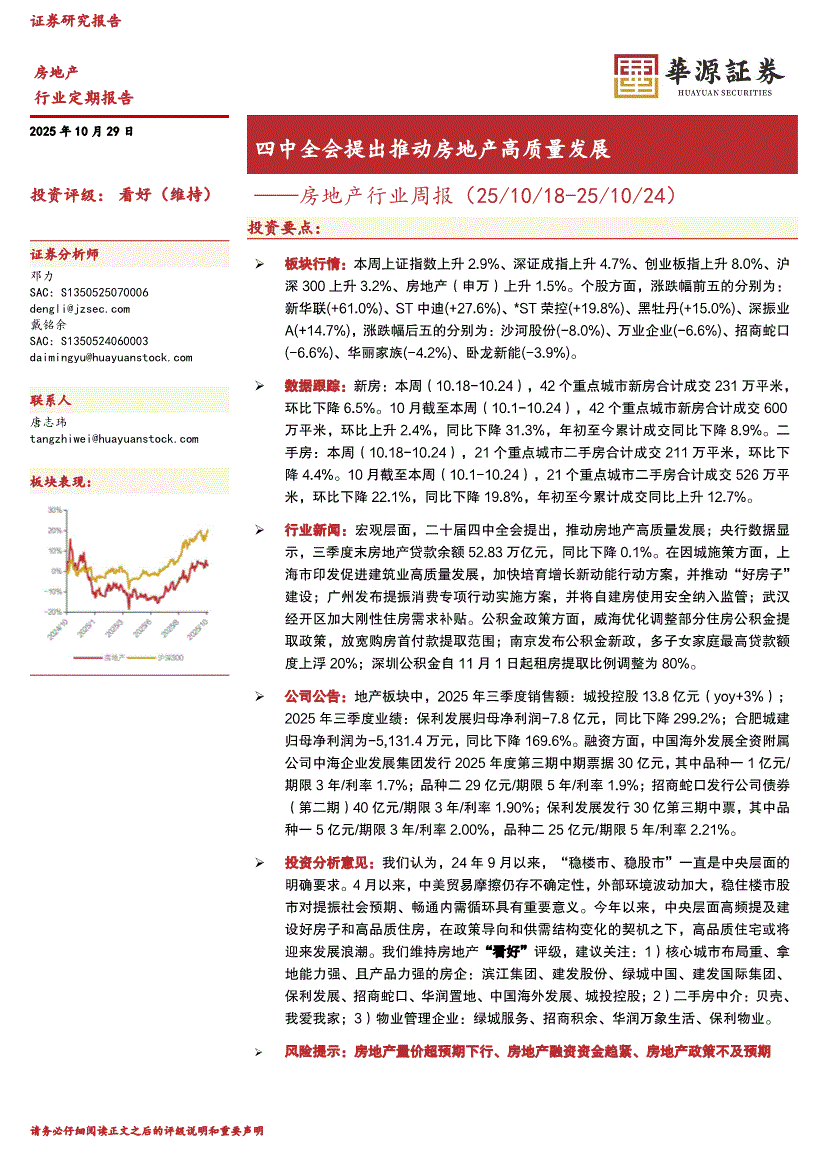房地产行业:华源证券-房地产行业周报:四中全会提出推动房地产高质量发展-251029
