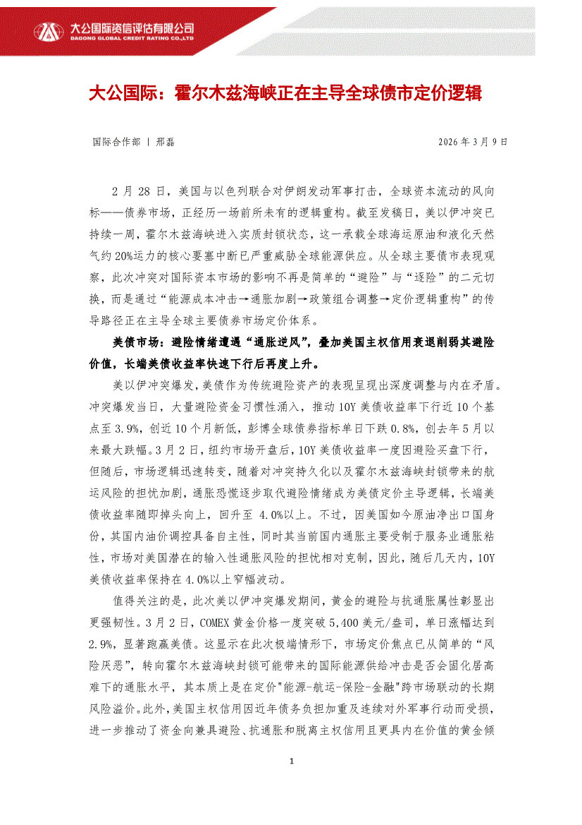 大公国际-霍尔木兹海峡正在主导全球债市定价逻辑-260309