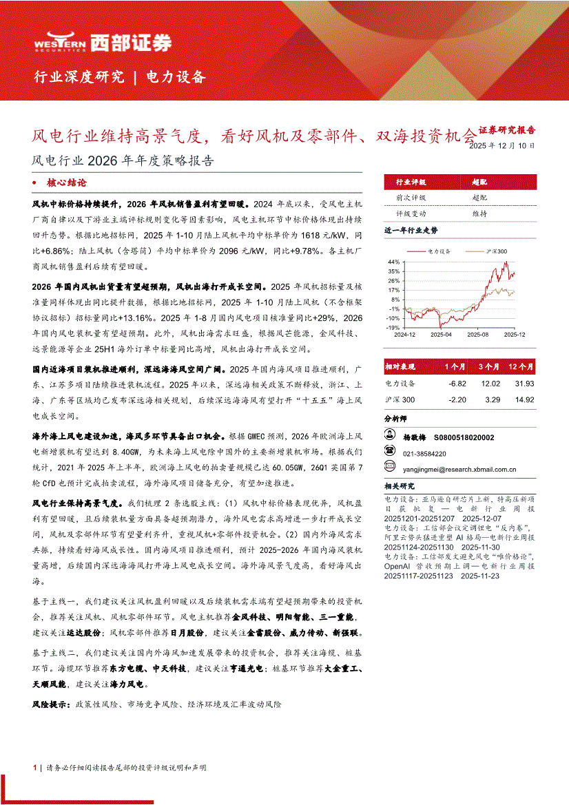 风电行业:西部证券-风电行业2026年年度策略报告:风电行业维持高景气度,看好风机及零部件、双海投资机会-251210