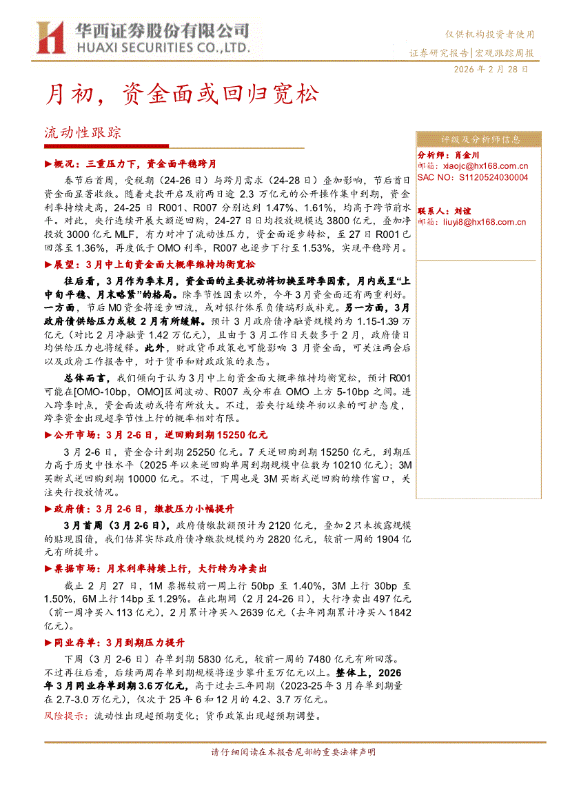 华西证券-流动性跟踪:月初,资金面或回归宽松-260228