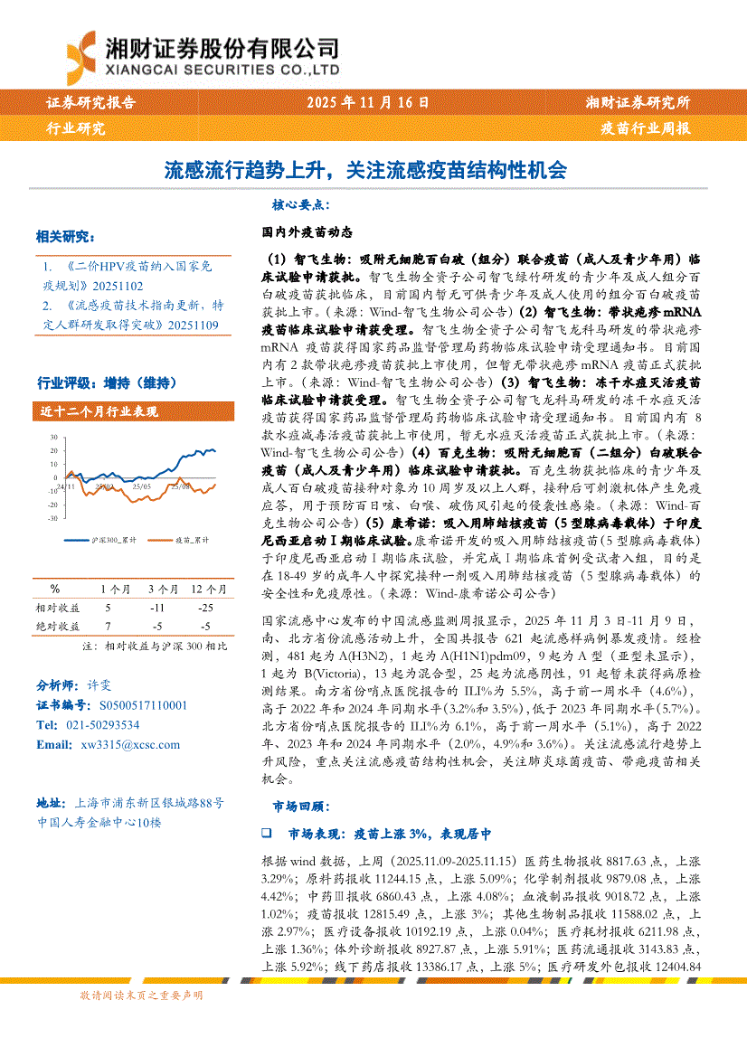 疫苗行业:湘财证券-疫苗行业周报:流感流行趋势上升,关注流感疫苗结构性机会-251116