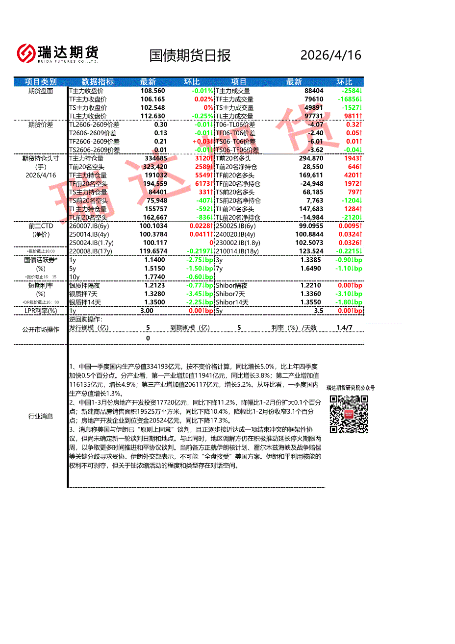 瑞达期货-国债期货日报-260416