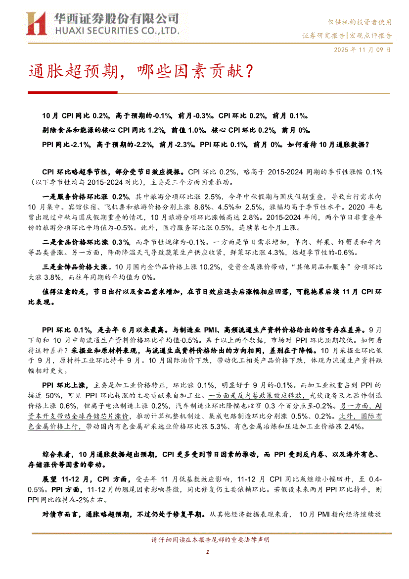 华西证券-通胀超预期,哪些因素贡献?-251109