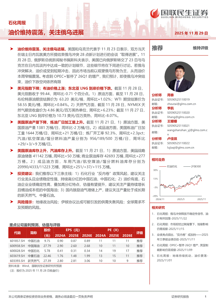 石化行业:国联民生证券-石化行业周报:油价维持震荡,关注俄乌进展-251129