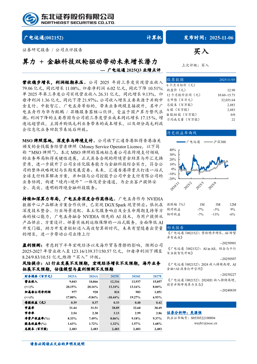 广电运通:东北证券-广电运通-002152-2025Q3业绩点评:算力+金融科技双轮驱动带动未来增长潜力-251106