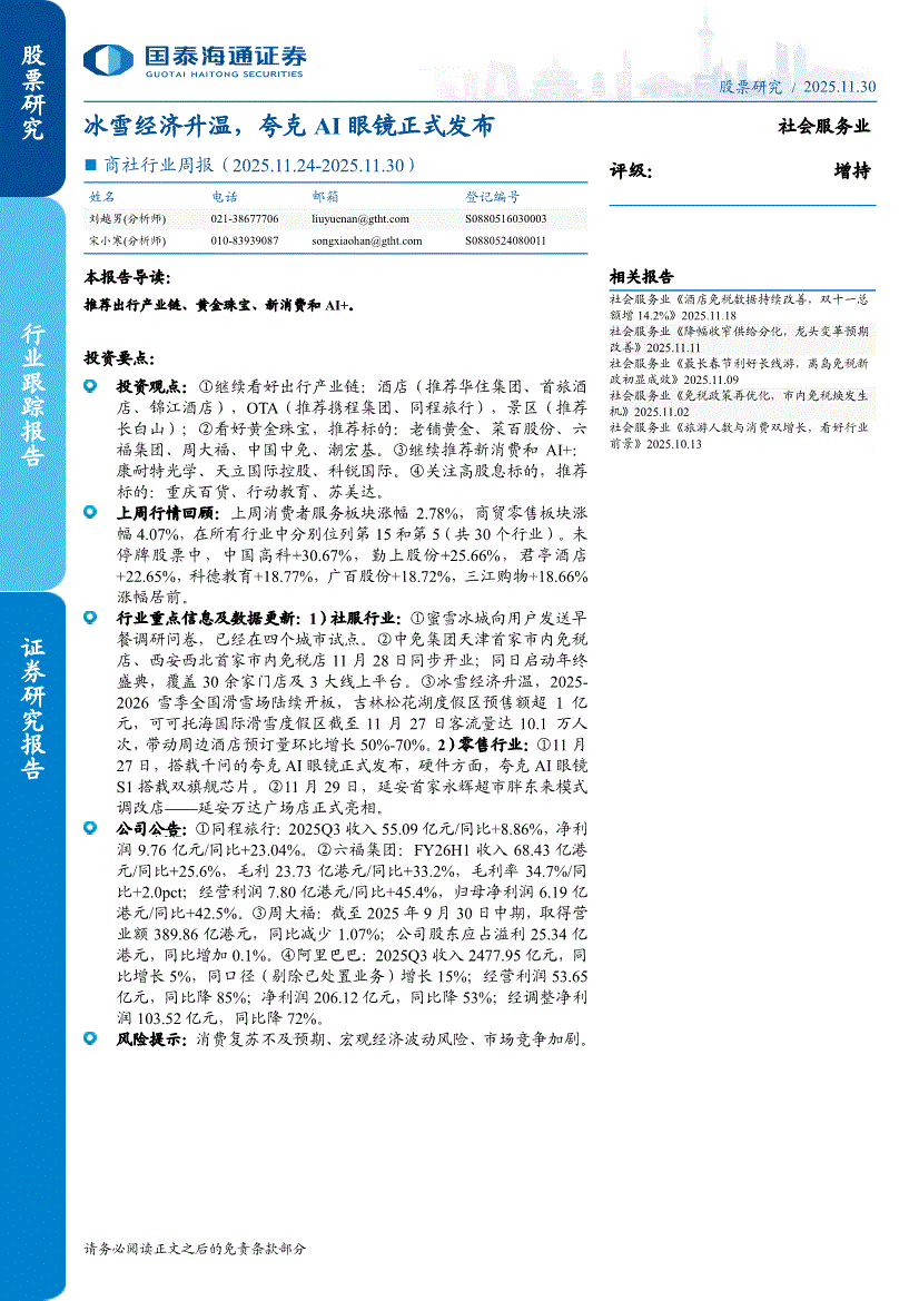 社会服务行业:国泰海通证券-商社行业周报:冰雪经济升温,夸克AI眼镜正式发布-251130