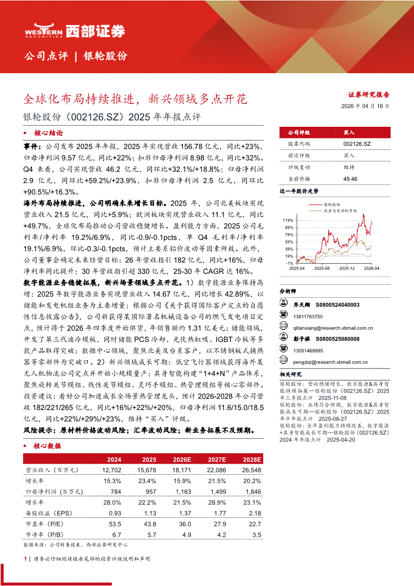 银轮股份:西部证券-银轮股份-002126-2025年年报点评:全球化布局持续推进,新兴领域多点开花-260416