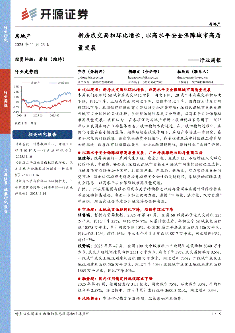 房地产行业:开源证券-房地产行业周报:新房成交面积环比增长,以高水平安全保障城市高质量发展-251123